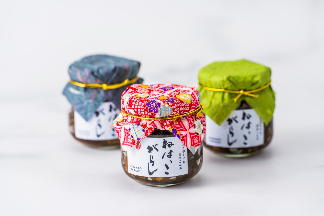 青唐辛子のピリッとした辛さと、昆布とかつおの出汁の旨みが絶妙に調和した、少し粘りのある昆布の佃煮になります。化学調味料や保存料を使わず、岩手県を中心とした国産原材料を使用し、ひとつひとつ手作業で丁寧に仕上げました。白いごはんとの相性は抜群で、おにぎりの具材としてもおすすめです。日本酒のお供にもよく合います。ラベルの筆文字は岩手の書道家によるもの。包み紙には、岩手の伝統工芸「東山和紙」を使用し、職人が一枚一枚手染めで仕上げています。味わい、香り、デザイン── ″岩手をまるごと″つめ込んだ商品です。